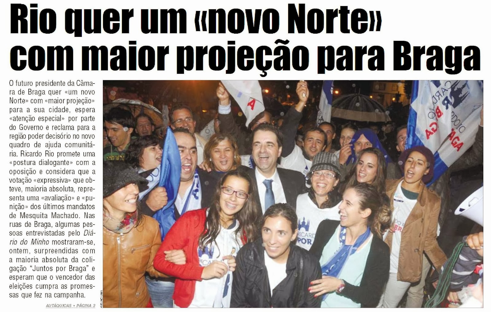 Aos 40 anos e à terceira tentativa, Ricardo Rio conseguiu ganhar a Câmara de Braga para a coligação PSD/PP. Mesquita Machado estava há 37 anos na câmara.