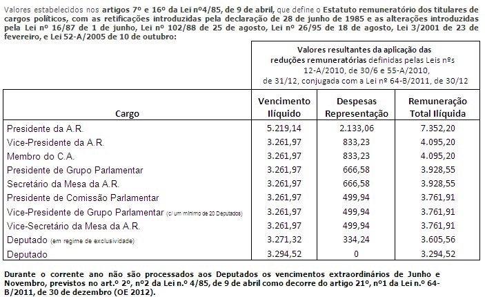parlamentares, abrangido pelo acordo entre a Assembleia da República e os