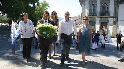 Os “conselheiros” fizeram questão de colocar uma coroa de flores junto da estátua de D. Afonso Henriques, homenageando assim o fundador de Portugal e da monarquia portuguesa.