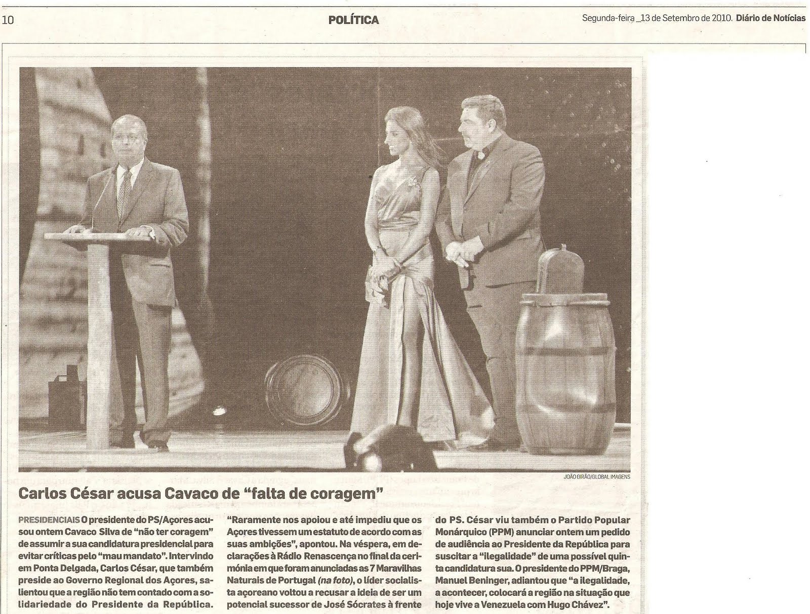 César viu também o Partido Popular Monárquico (PPM) anunciar ontem um pedido de audiência ao Presidente da República para suscitar a “ilegalidade” de uma possível quinta candidatura sua. O Presidente do PPM/Braga, Manuel Beninger, adiantou que “a ilegalidade, a acontecer, colocará a região na situação que hoje vive a Venezuela com Hugo Chávez”.