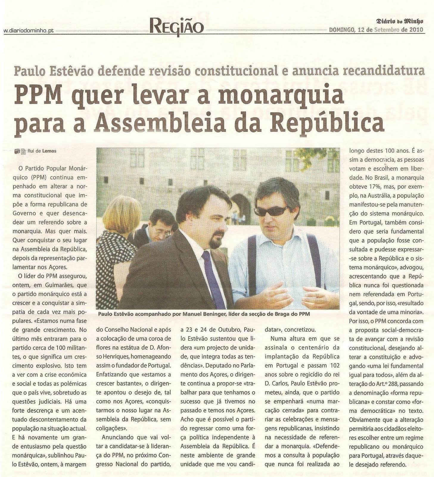 DM Rui de Lemos – O Partido Popular Monárquico (PPM) continua empenhado em alterar a norma constitucional que impõe a forma republicana de Governo e quer desencadear um referendo sobre a monarquia. Mas quer mais. Quer conquistar o seu lugar na Assembleia da República, depois da representação parlamentar nos Açores.