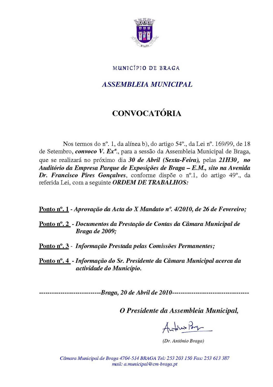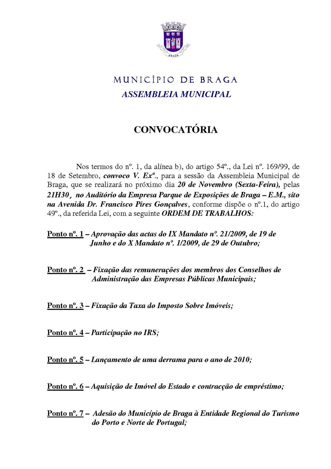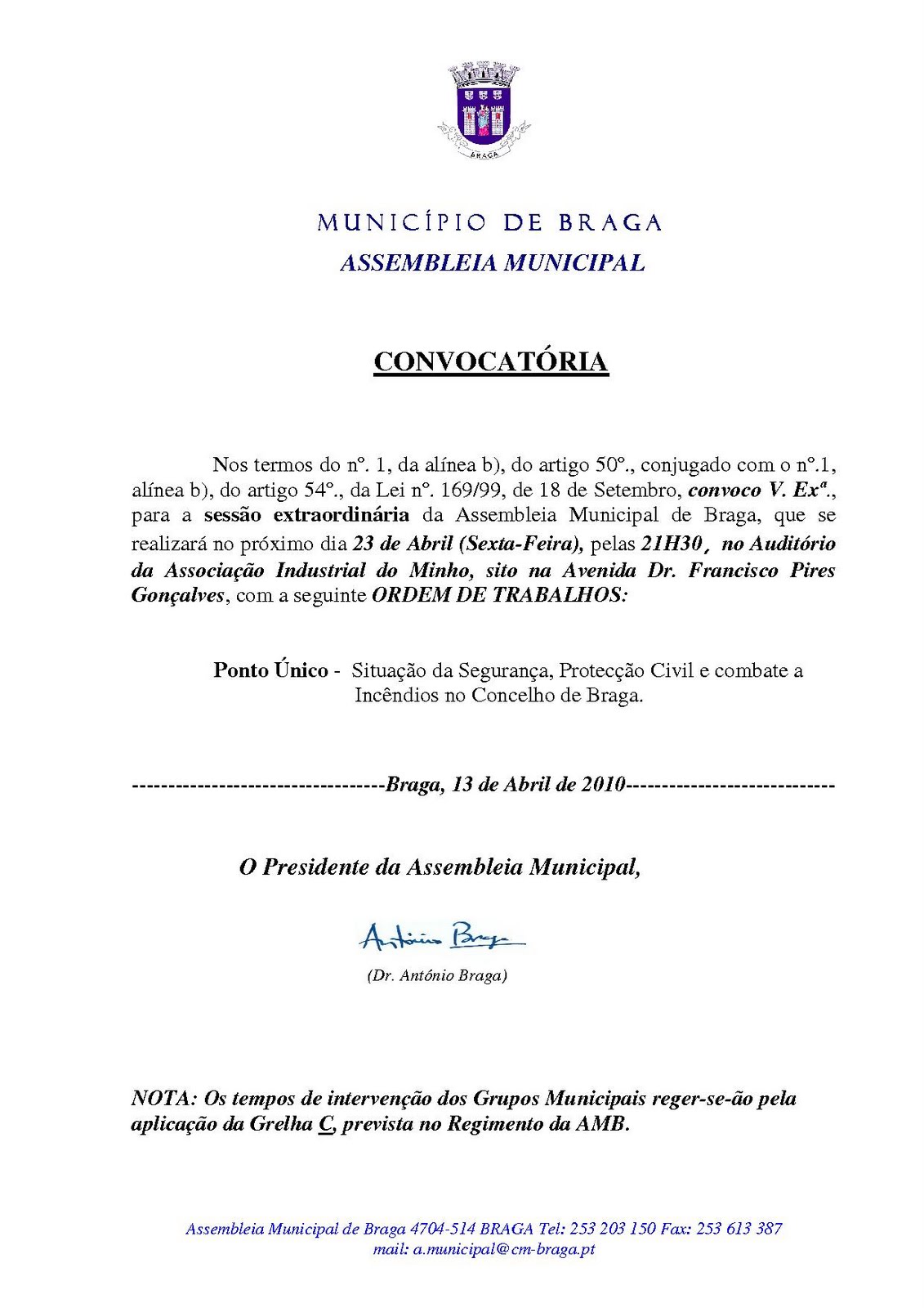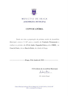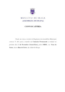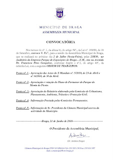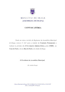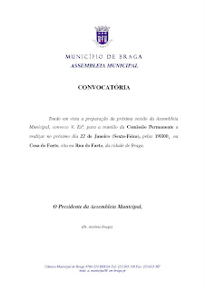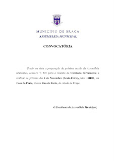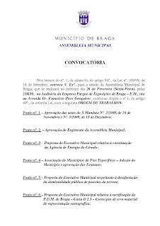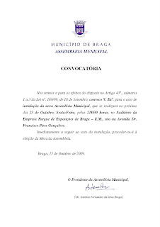 Convocatória para a Tomada de Posse da Assembleia Municipal de Braga