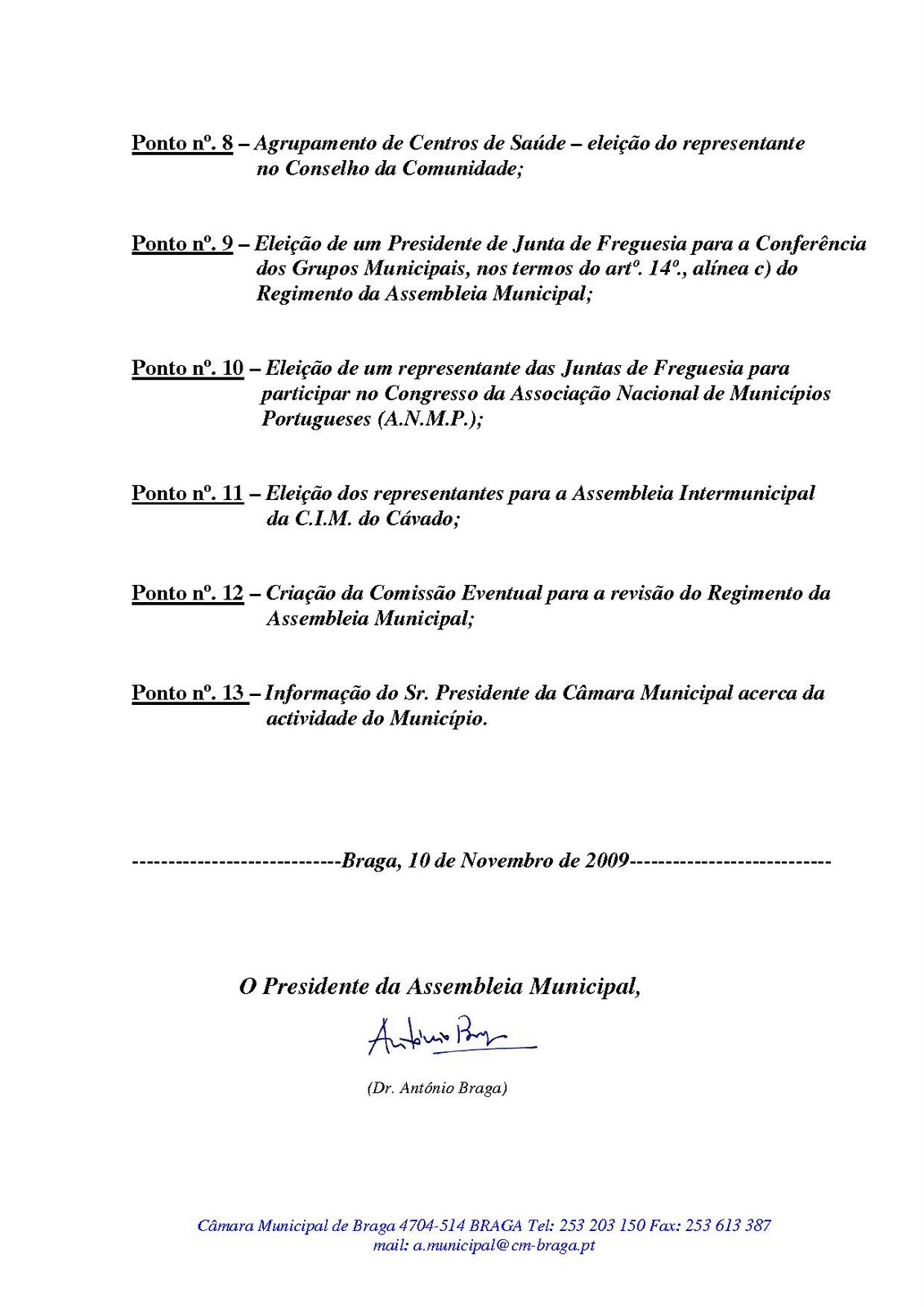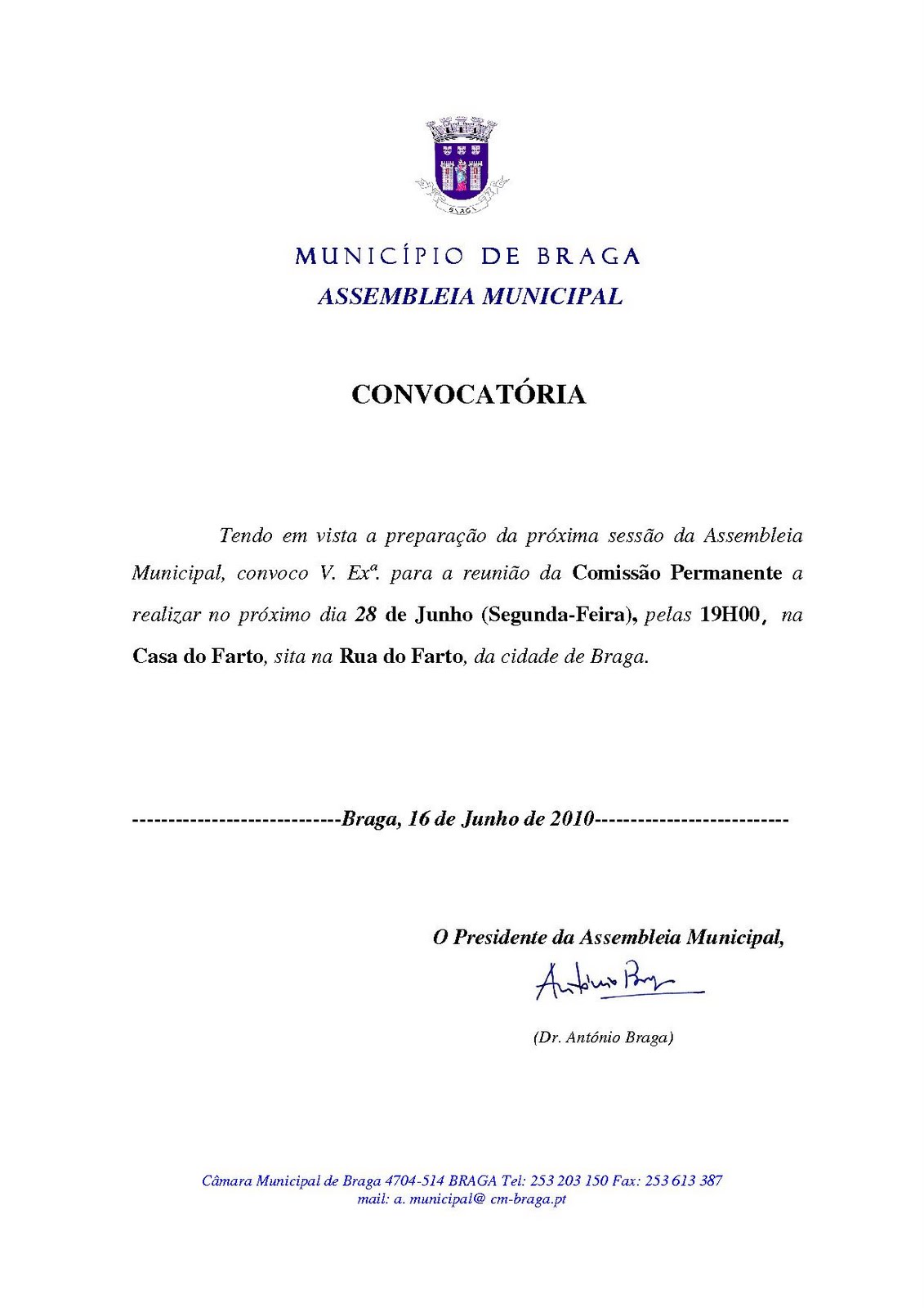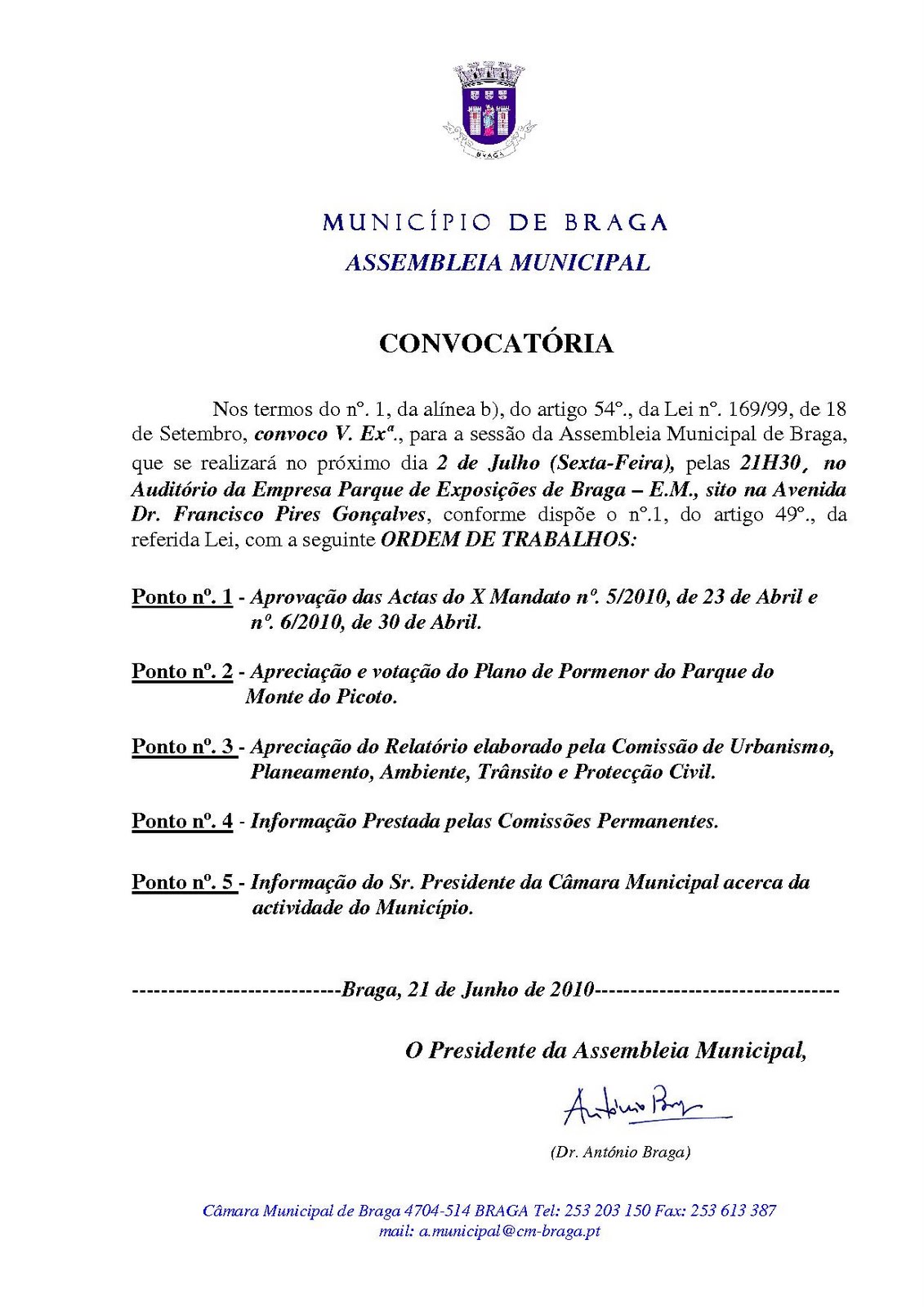 Convocatória para a Tomada de Posse da Assembleia Municipal de Braga