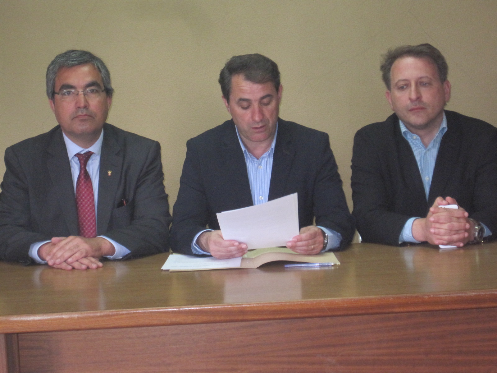 da Costa Ortiga ladeado pelo provedor da Irmandade de Santa Cruz, Dr. Luís Rufo e, à direita na foto, pelo presidente da Assembleia Municipal da Póvoa de Lanhoso, Dr. Amândio de Oliveira