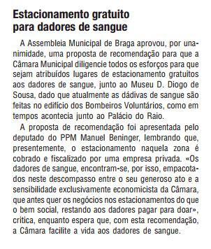 estacionamentos do que o bem social, restando aos dadores de sangue bracarenses