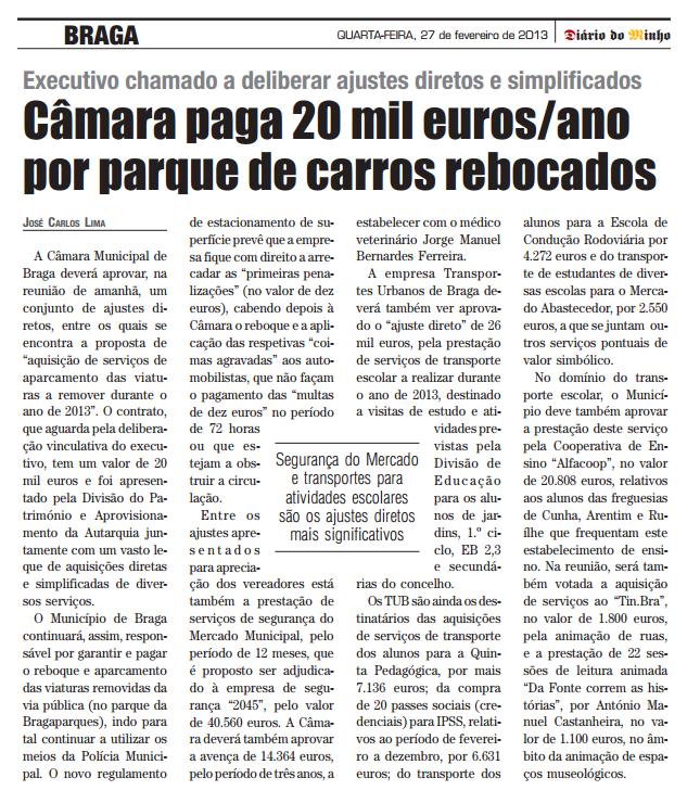 negócios da Câmara que pouco beneficia os munícipes bracarenses, o