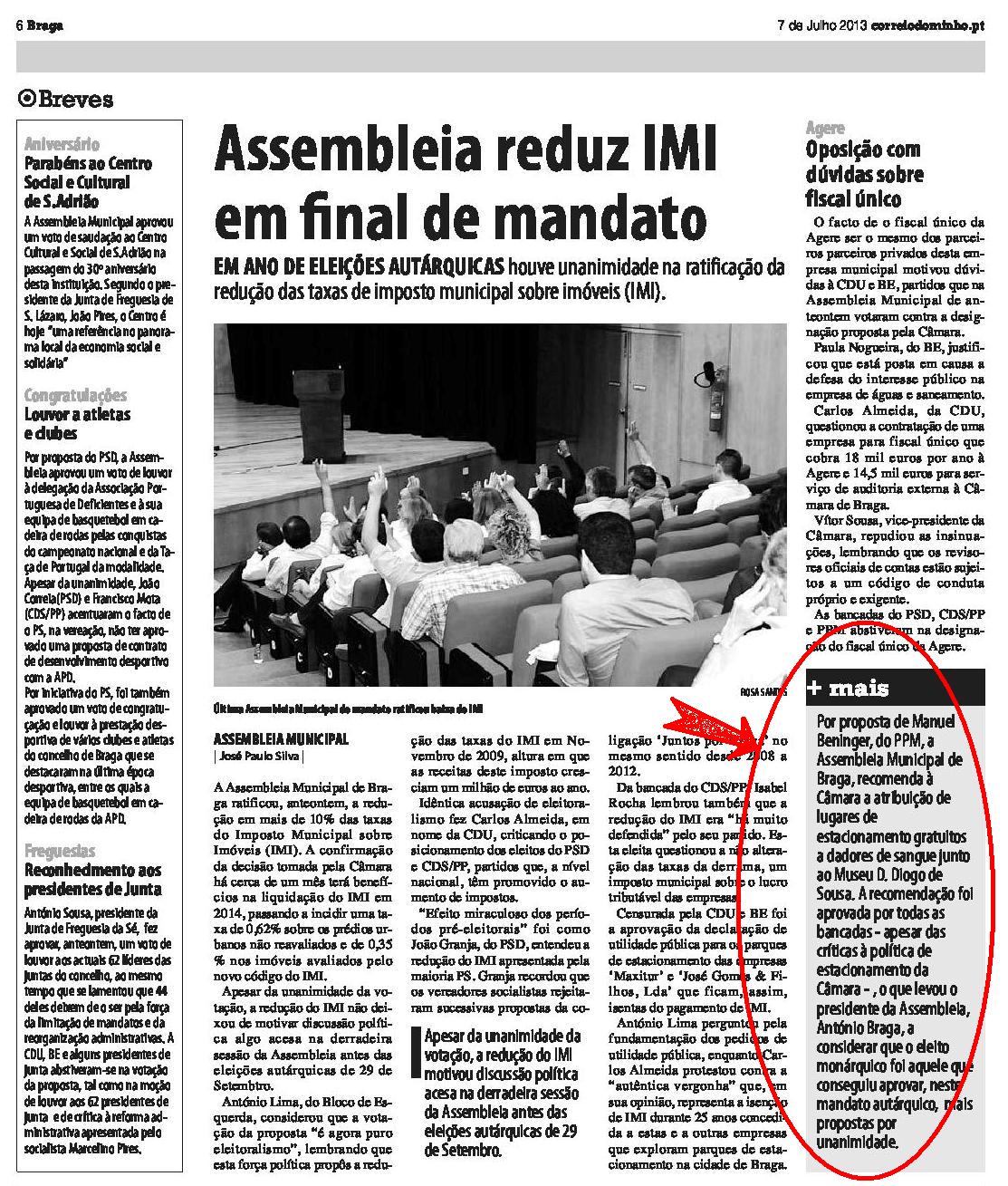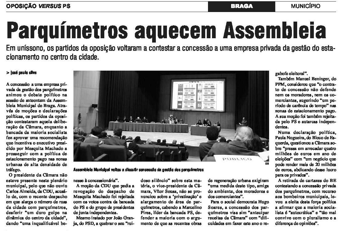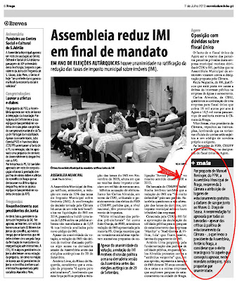 debate político na sessão de anteontem da Assembleia Municipal de Braga. Através