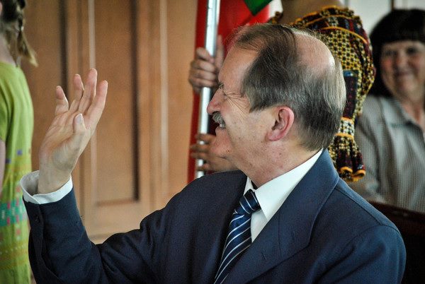 em nome do grupo, leu a invocação ao Senhor Santiago, pedindo por Portugal e os